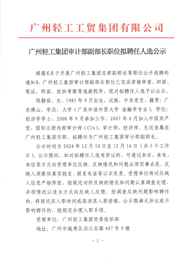 华亿官方网站_华亿集团有限公司审计部副部长拟聘任人选公示